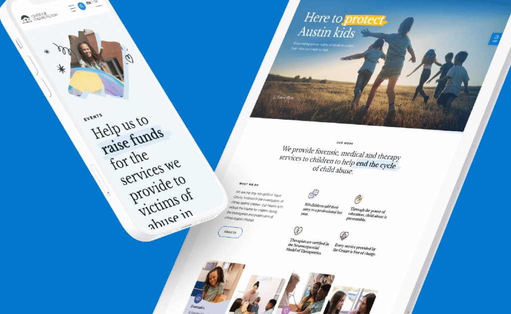 The Center for Child Protection, a beacon of hope for children in Travis County, entrusted GLIDE with a transformative mission: to redesign their digital platform and amplify their message of child advocacy. As the sole nonprofit in Travis County dedicated to investigating and prosecuting crimes against children, the Center’s work is vital and impactful.