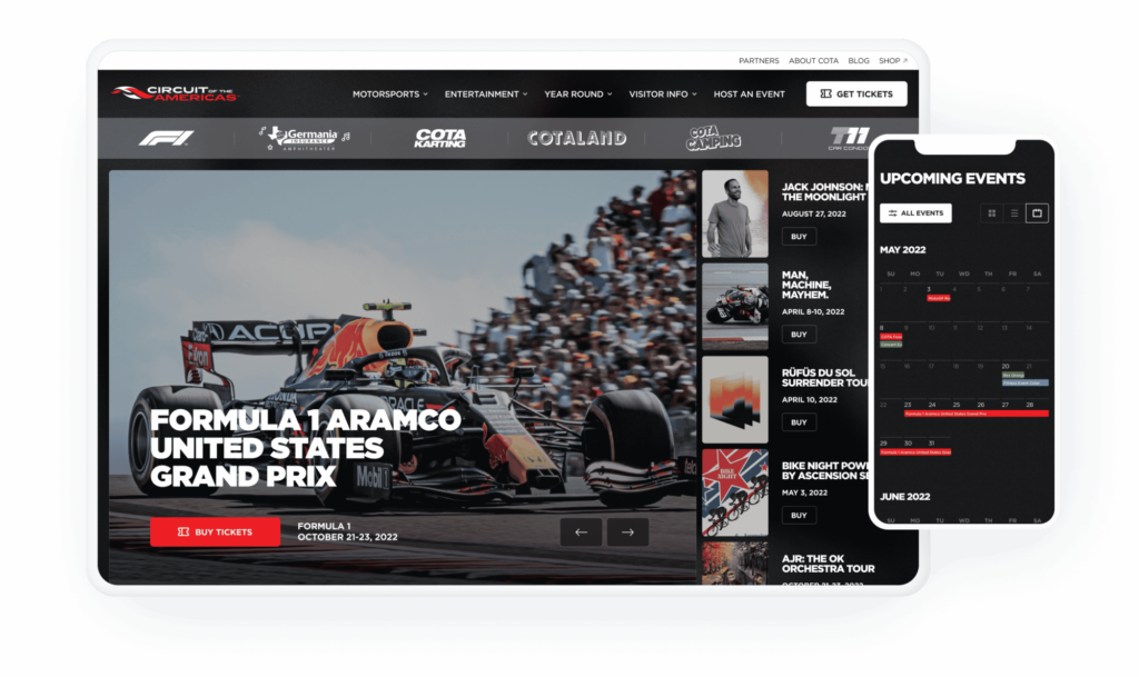 Formula 1. ZZ Top. Moto GP. Wu Tang. Take your pick of the best motorsports and entertainment options at Circuit of the Americas—located in beautiful Austin, Texas. It’s been ten years now since their winding race track was laid, which means it was time for their website to match the extreme growth they’ve seen over the years.