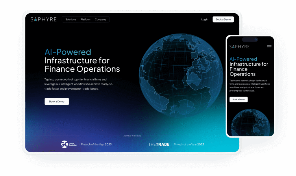Sapyre is revolutionizing the finance industry’s operational processes with their universal operating system, designed to streamline pre-trade activities and eliminate post-trade issues. We were thrilled to partner with them to redesign their website, bringing clarity to their innovative solutions and making it easy for their diverse client base to navigate.